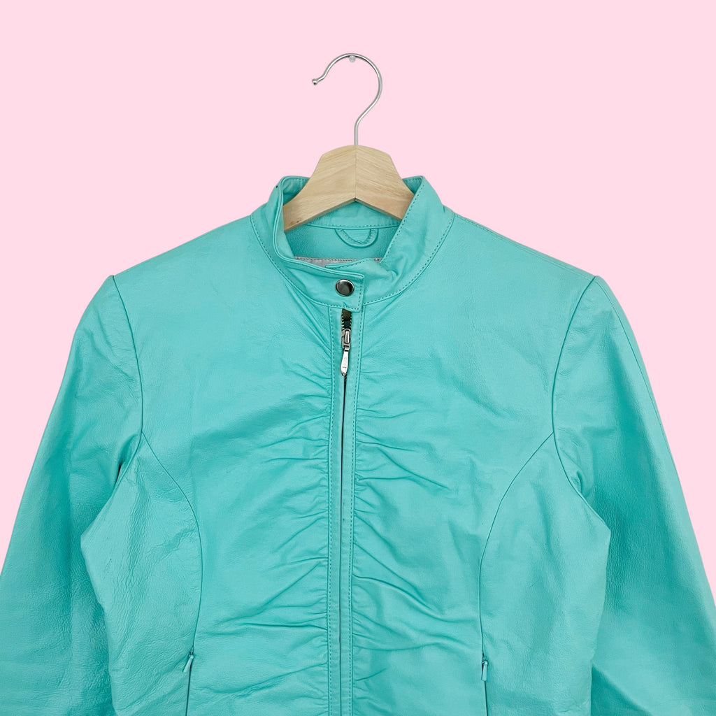 WILSON'S MINT GREEN RUCHED LEATHER JACKET (S)