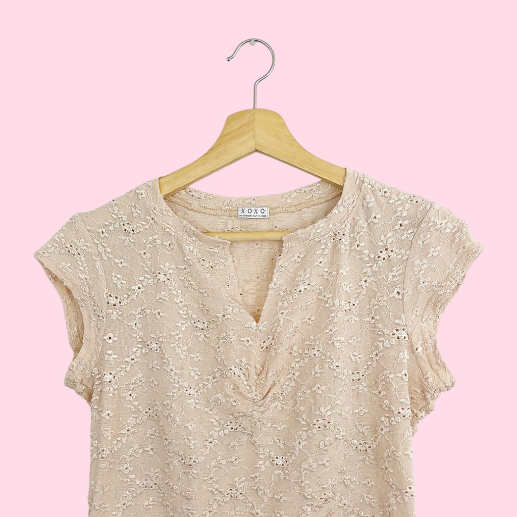 XOXO TAN FLORAL LACE UP TOP (M)