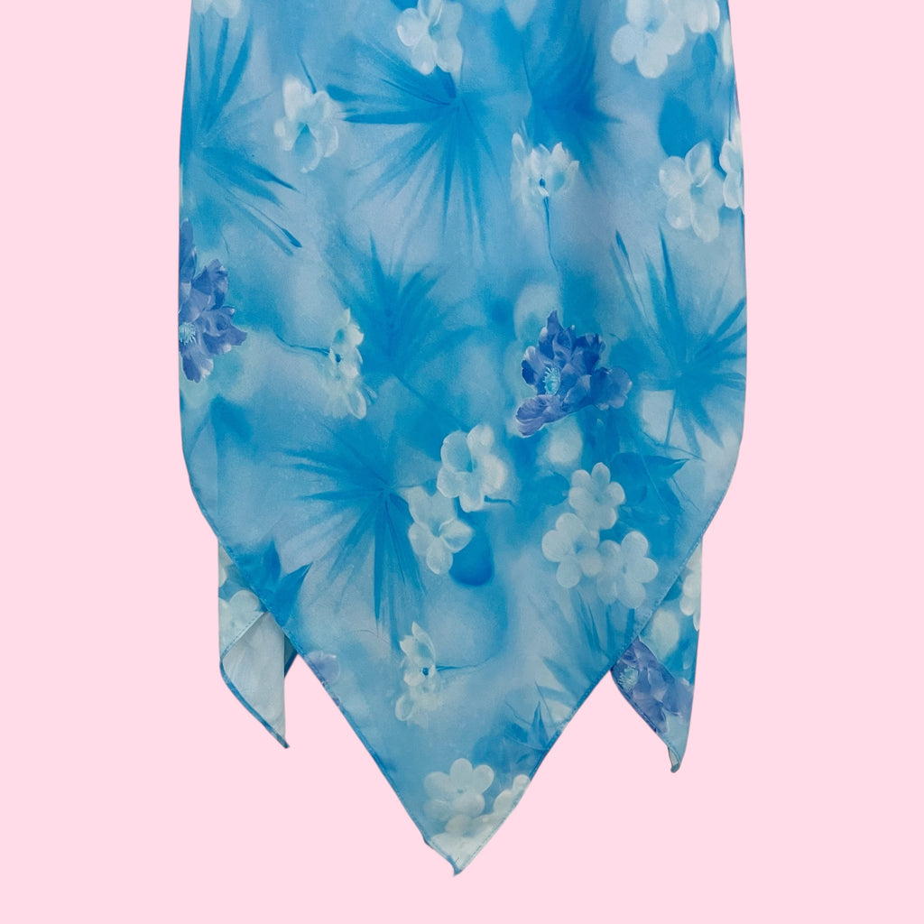 Y2K Blue Floral Asymmetrical Midi Dress (S/M)