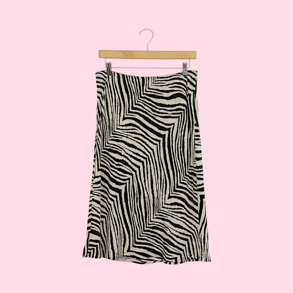 Y2K Silk Zebra Print Skirt + Scarf (L)