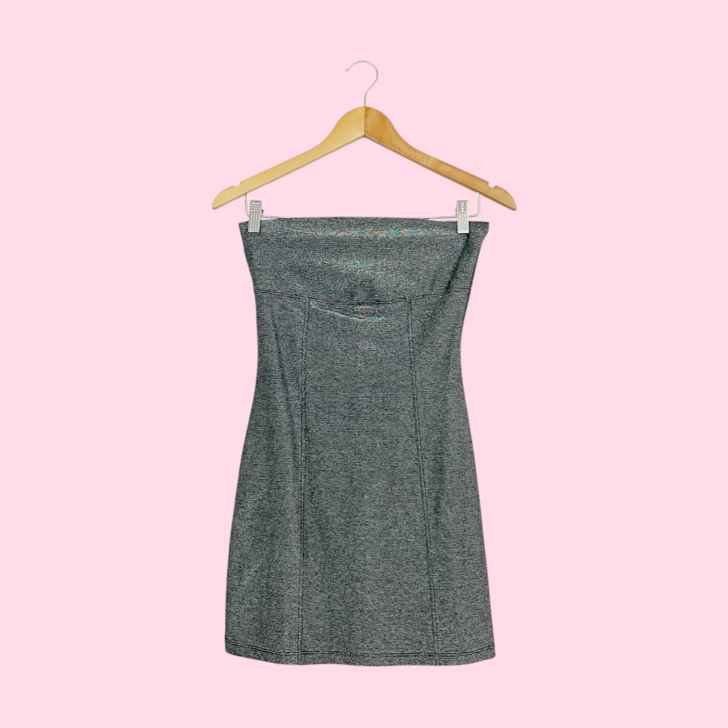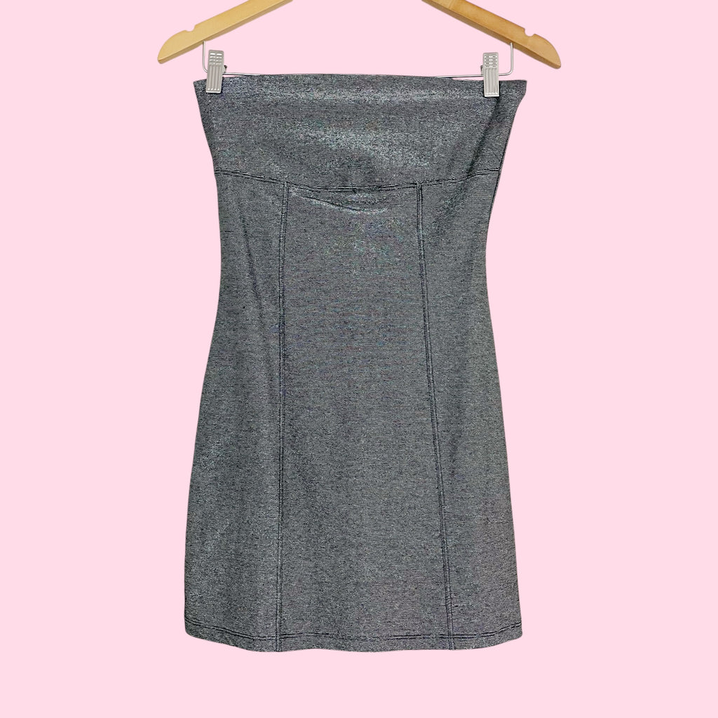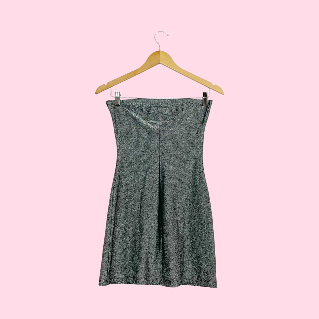 Y2K Silver Metallic Strapless Mini Dress (S)