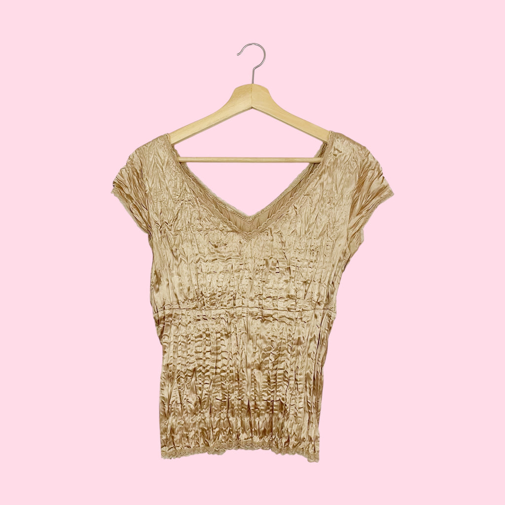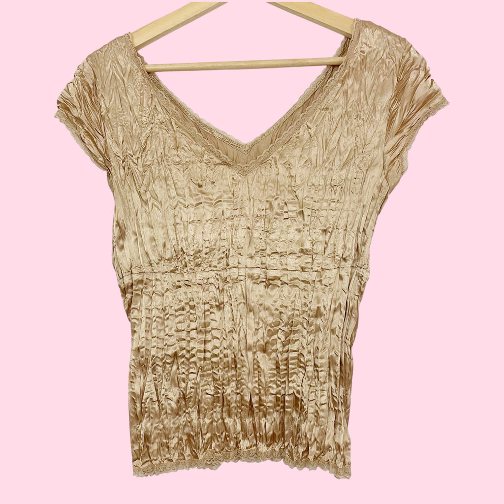 Y2K Tan Pleated Blouse (M)