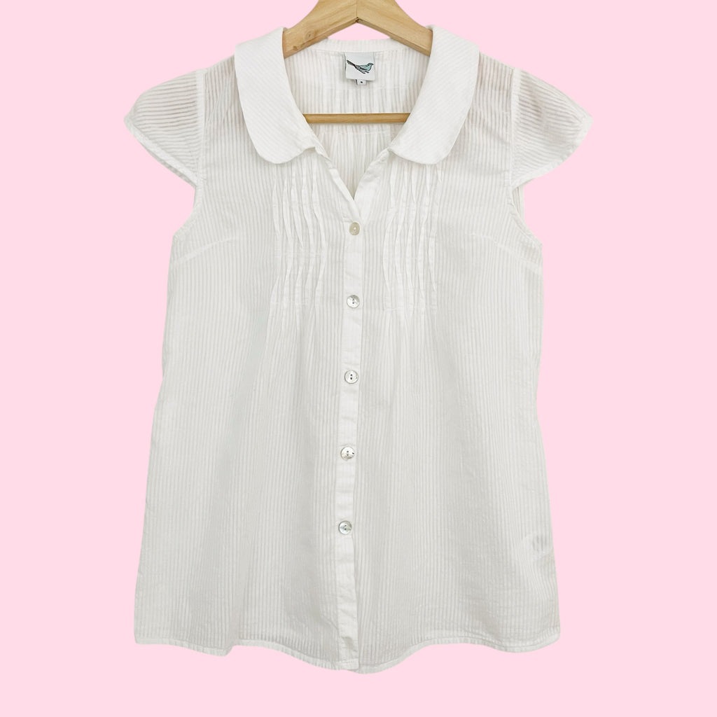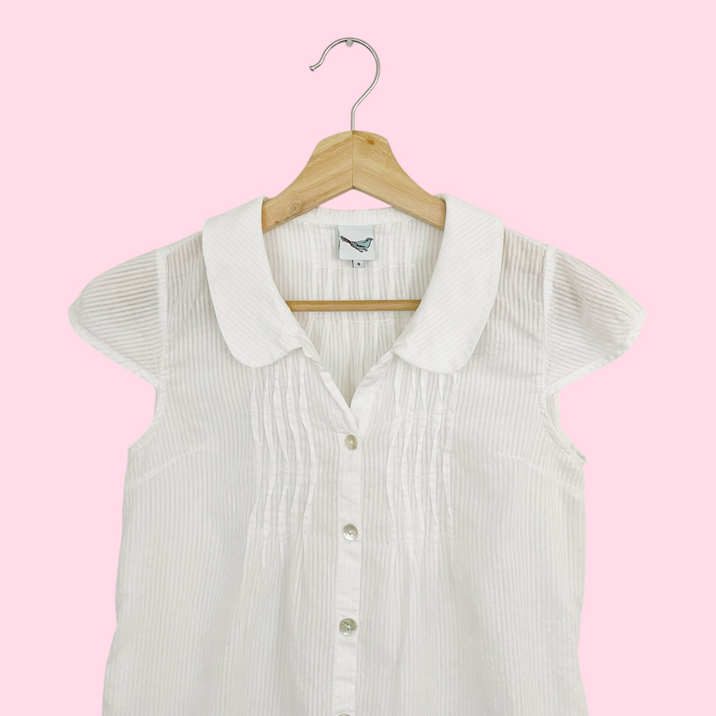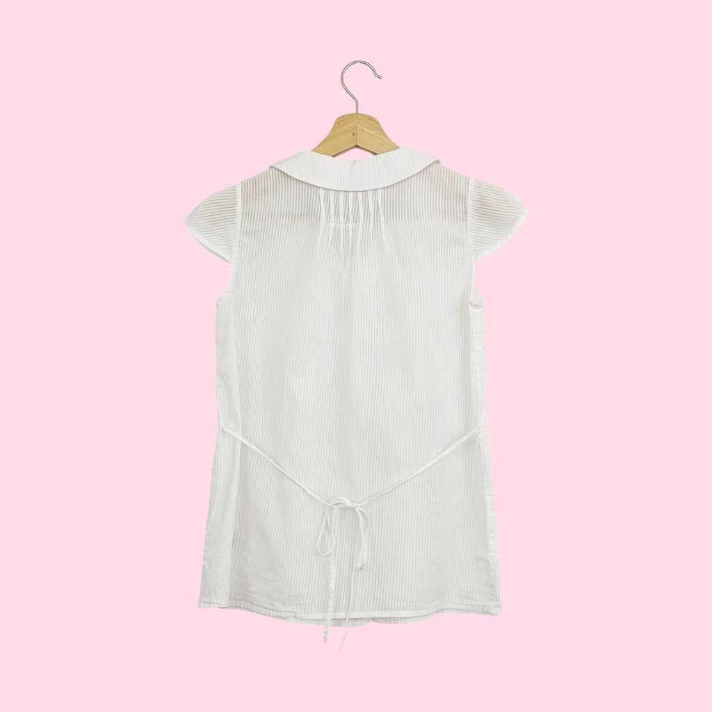 Y2K WHITE SHEER STRIPED BLOUSE (S)